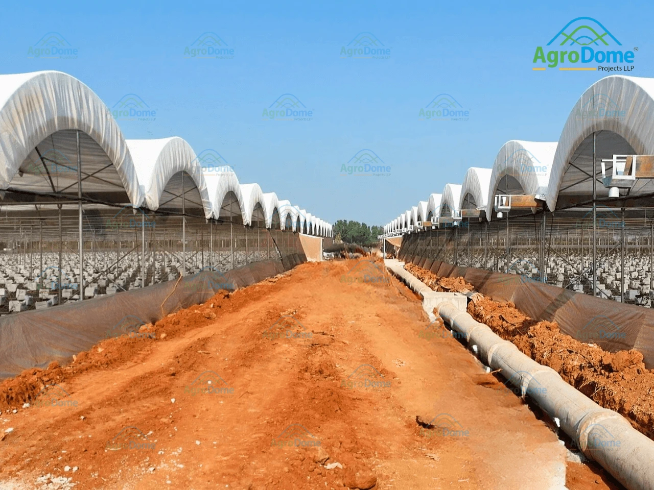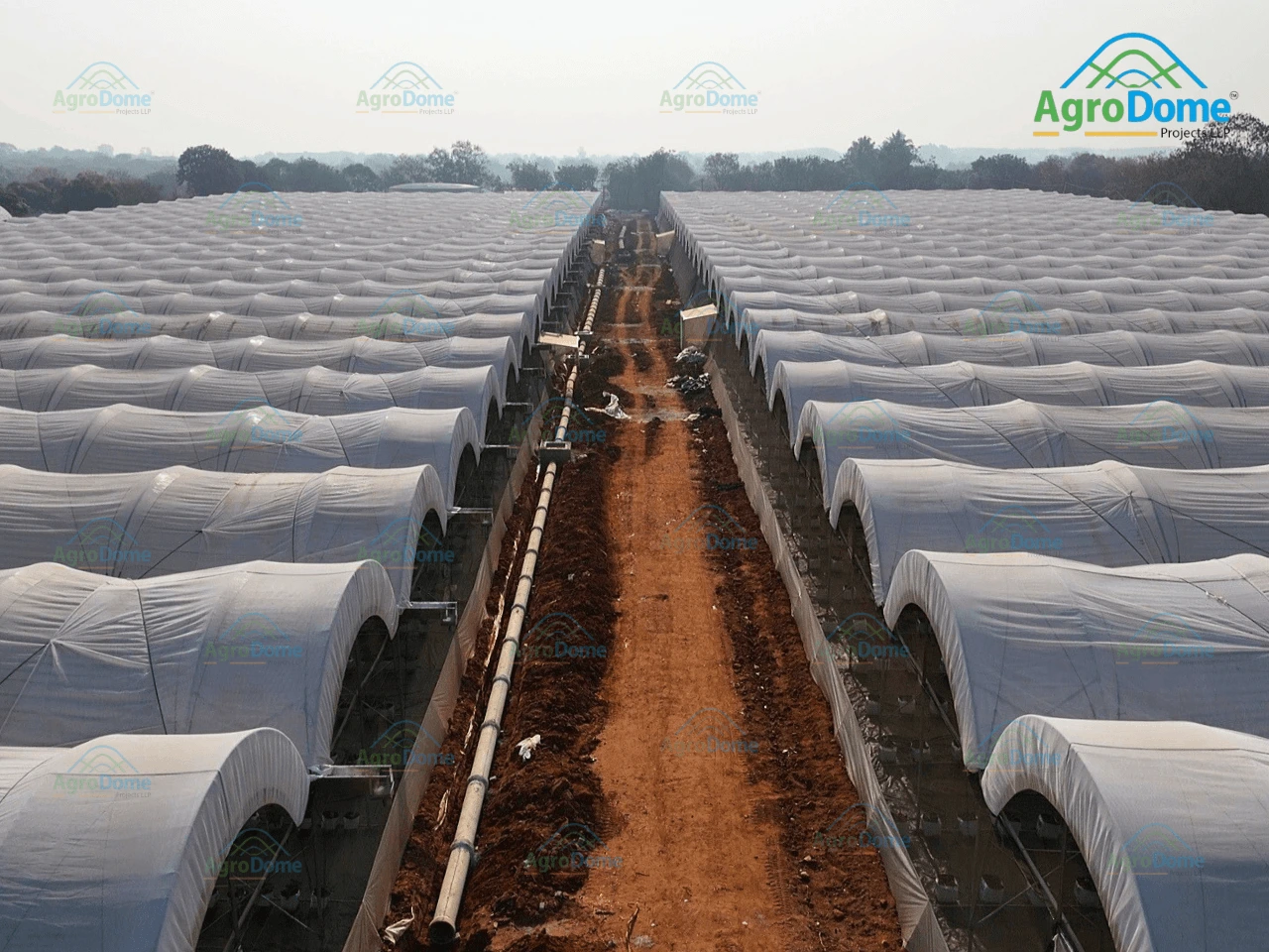 Tunnel Dhanuka Hydrabad Project Details Project Name: Tunnel Surface Area: 26000 m2 sqm Structure Height: 4.5 Crop: BlueBerry Crop Load: Location: – Hydrabad, Telangana. Year Complete: 2025